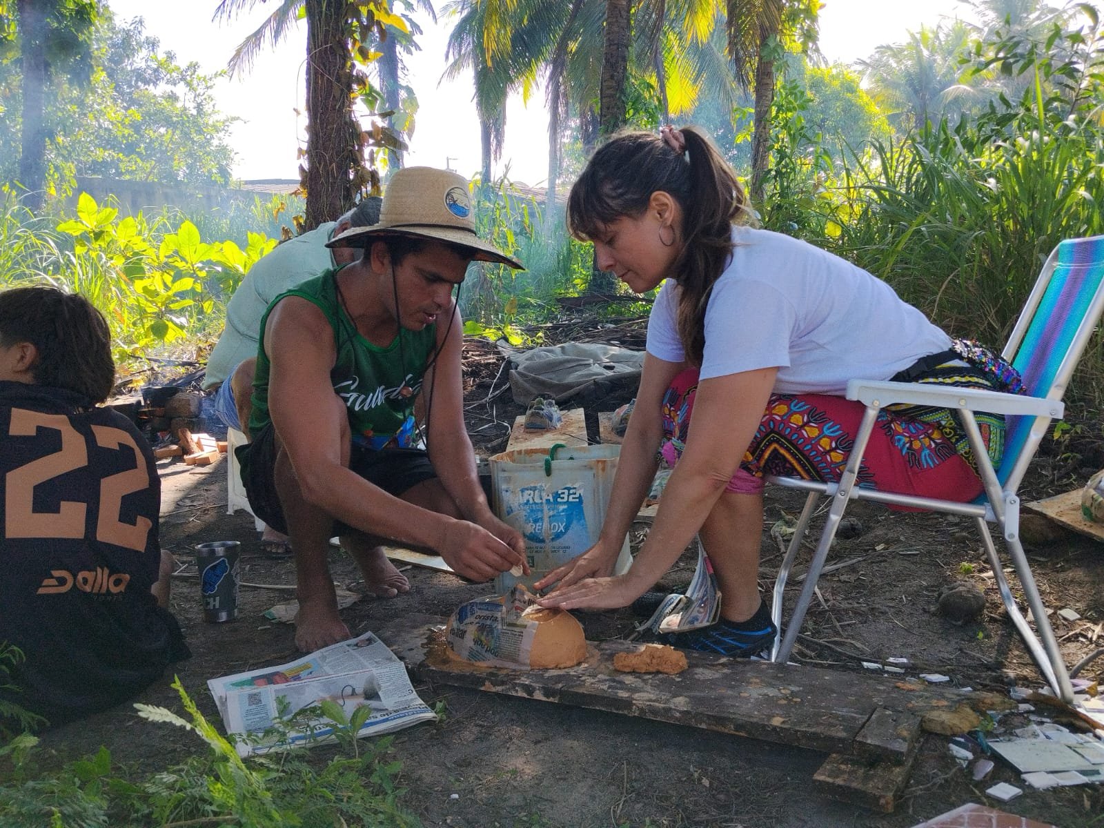 “Faziam a forma com barro, encapavam com camadas de tiras de papel, com cola de farinha de mandioca ou de trigo. As máscaras eram então postas para secar ao sol e, após a secagem, essa “capa” feita com as camadas de papel, eram retiradas da forma, recebiam o acabamento, os recortes de olhos, nariz etc”, relatou, antes de contar a parte final.