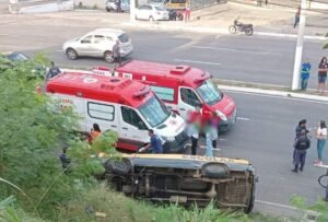 Ao menos seis crianças que estavam em uma van escolar ficaram feridas depois que o veículo caiu de um barranco, na manhã desta terça-feira (21), no bairro Alvorada, em Vila Velha. A van capotou e ficou tombada na calçada e em parte de uma das pistas da avenida Carlos Lindenberg.